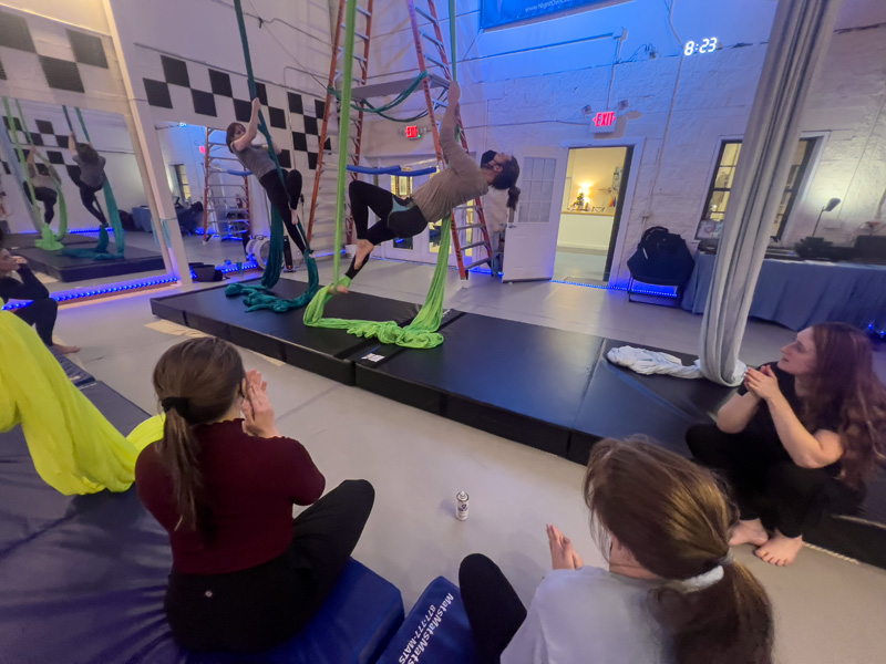Sling w/ Vianna Today 12 PM at North 3 spots open Learn MoreSign Up All-levels Fabric - Silks and Sling w/ Vianna Sun 10/19 11:30 AM at North 3 spots open Learn MoreSign Up Youth And Teen Aerial w/ Vianna Sun 10/19 6:30 PM at North 3 spots open Learn MoreSign Up Beginner Lyra w/ Caroline Sun 10/19 7:30 PM at North 2 spots open Learn MoreSign Up Partner Acro w/ Caroline Mon 10/20 7 PM at North 6 spots open Learn MoreSign Up All Levels Rope w/ Gracie Tue 10/21 7:15 PM at North 2 spots open Learn MoreSign Up Beginner Silks w/ Laurel Tue 10/21 8:15 PM at North 6 spots open Learn MoreSign Up Beginner/Intermediate Silks w/ Gracie Wed 10/22 1:30 PM at North 2 spots open Learn MoreSign Up Lyra Club w/ Caroline Wed 10/22 8 PM at North 4 spots open Learn MoreSign Up Strength and Flexibility w/ Craig Thu 10/23 1 PM at North 6 spots open Learn MoreSign Up Youth And Teen Aerial w/ Gracie Thu 10/23 1 PM at North 6 spots open Learn MoreSign Up